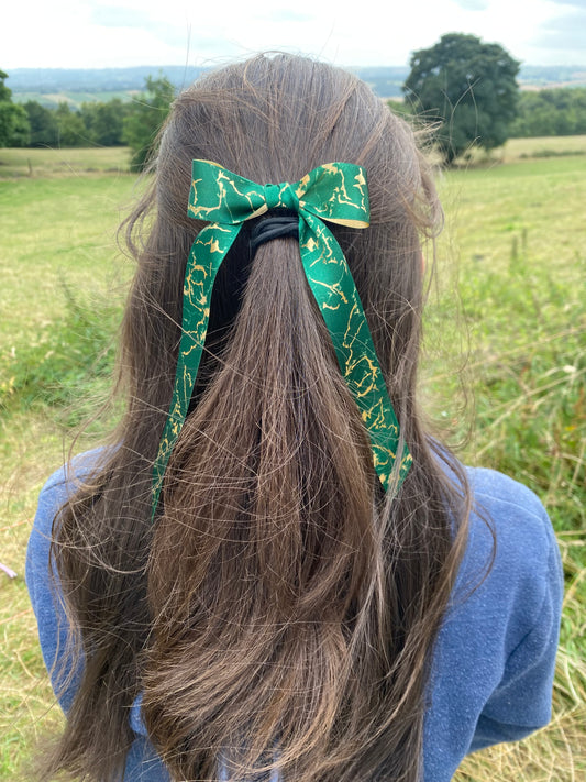 Emerald Green Large Satin Long Tailed Hair Ribbon