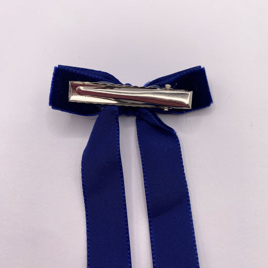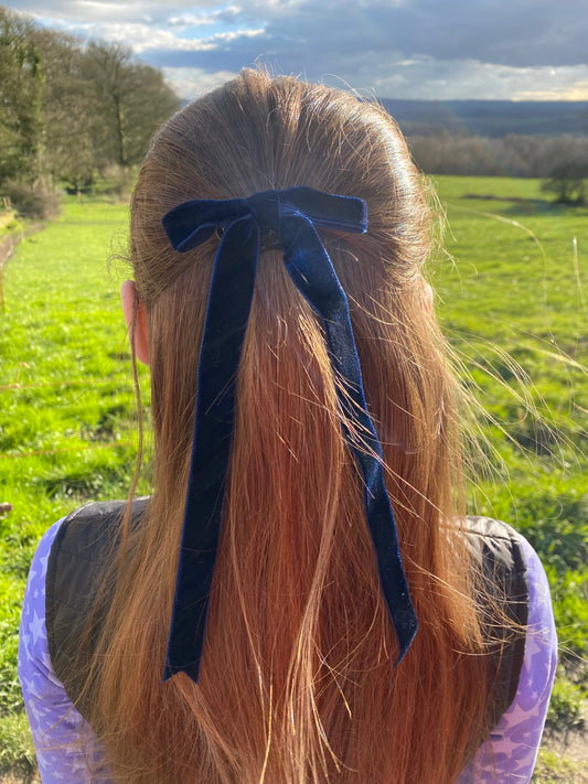 Midnight Navy Velvet Long Tailed Hair Ribbon