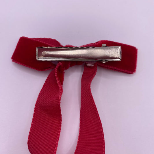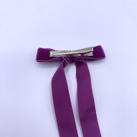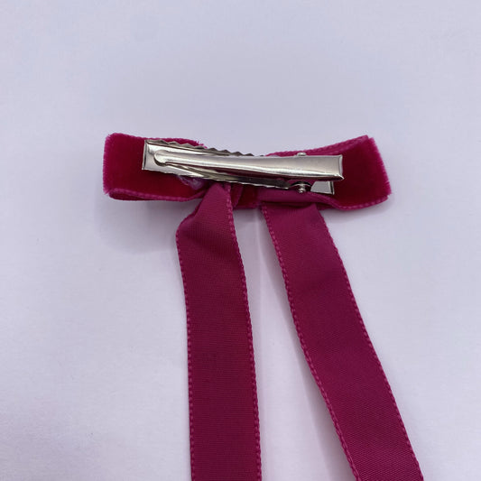 Cerise Pink Velvet Long Tailed Hair Ribbon