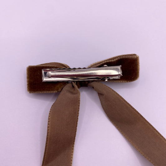 Our velvet hair bows only use premium velvet ribbon. With a matte finish, they are a more subtle look compared to our satin ribbons. They are demure, they are mindful.