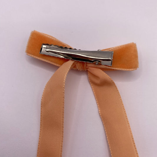 Peachy Orange Velvet Long Tailed Hair Ribbon