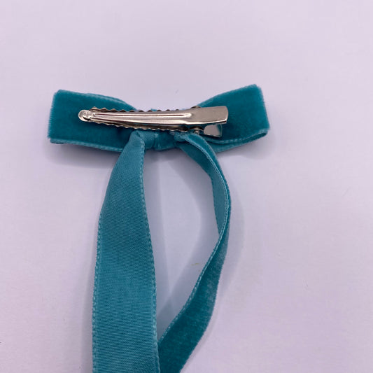 Cornflower Blue Velvet Long Tailed Hair Ribbon