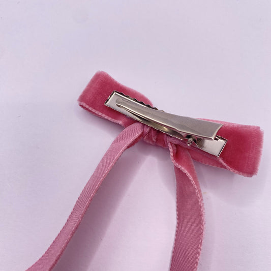Dusky Pink Velvet Long Tailed Hair Ribbon